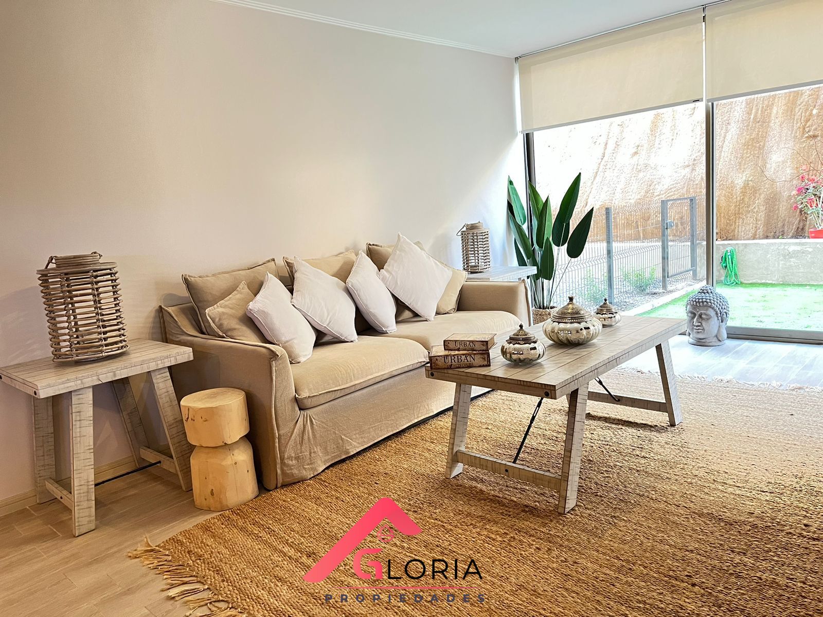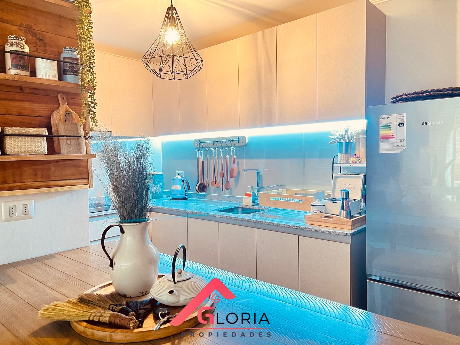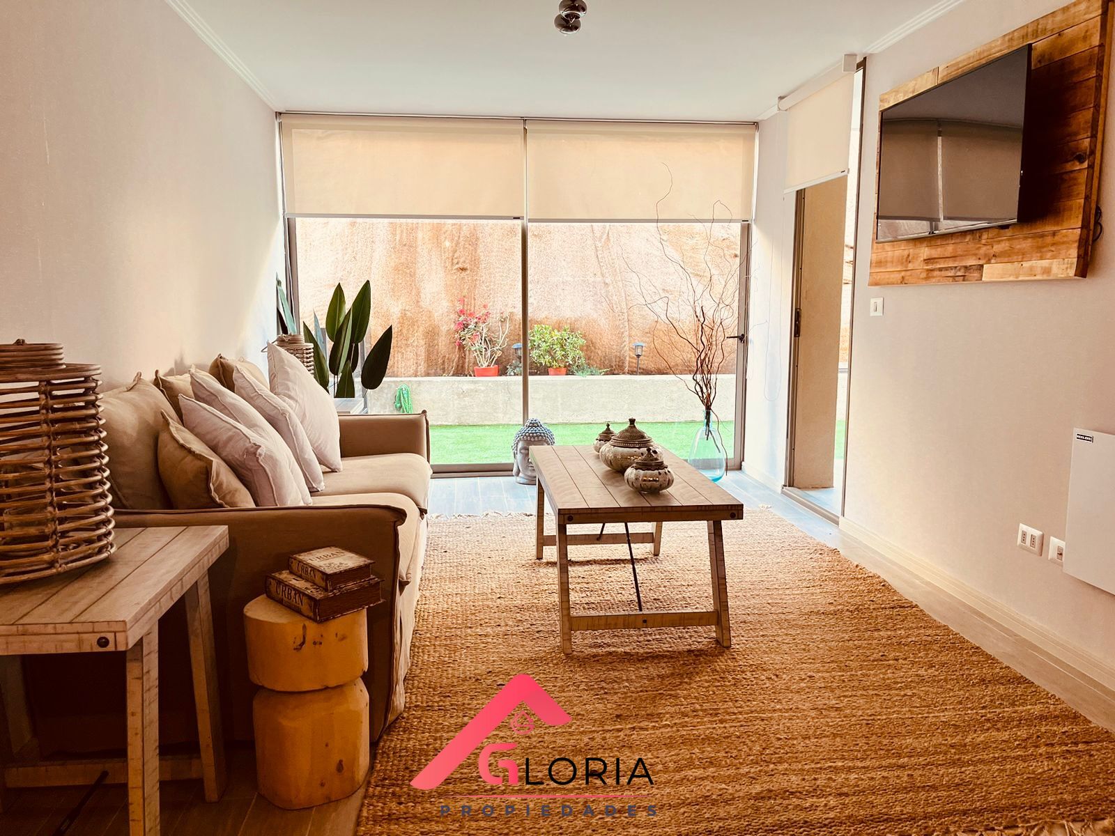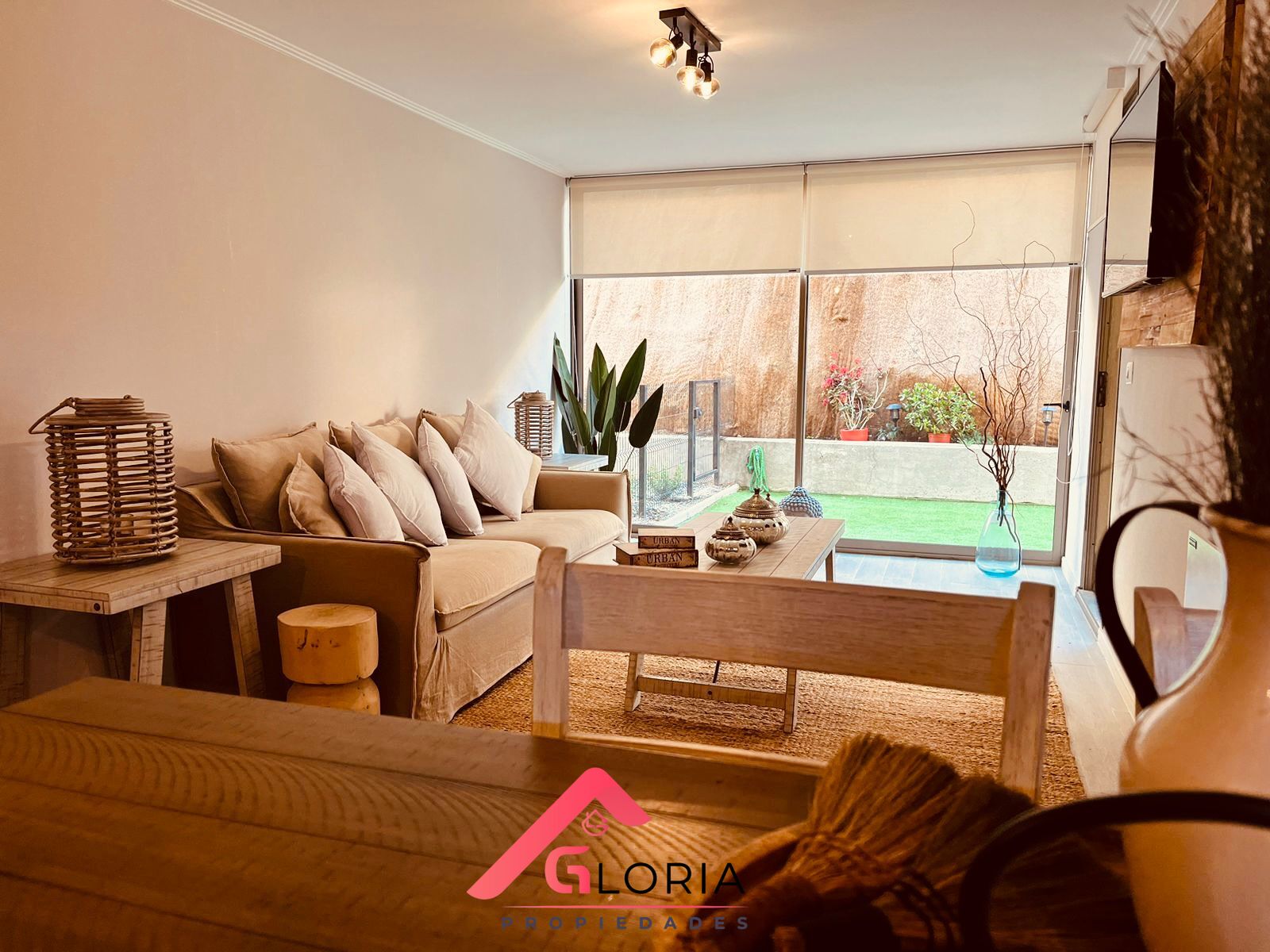 Vendemos departamento de dos dormitorios con dos baños, Amplio Living Comedor con terraza, cocina integrada, amoblada y equipada, Walk-in Closet amplio, Cortinas roller, Patio con pasto sintético,