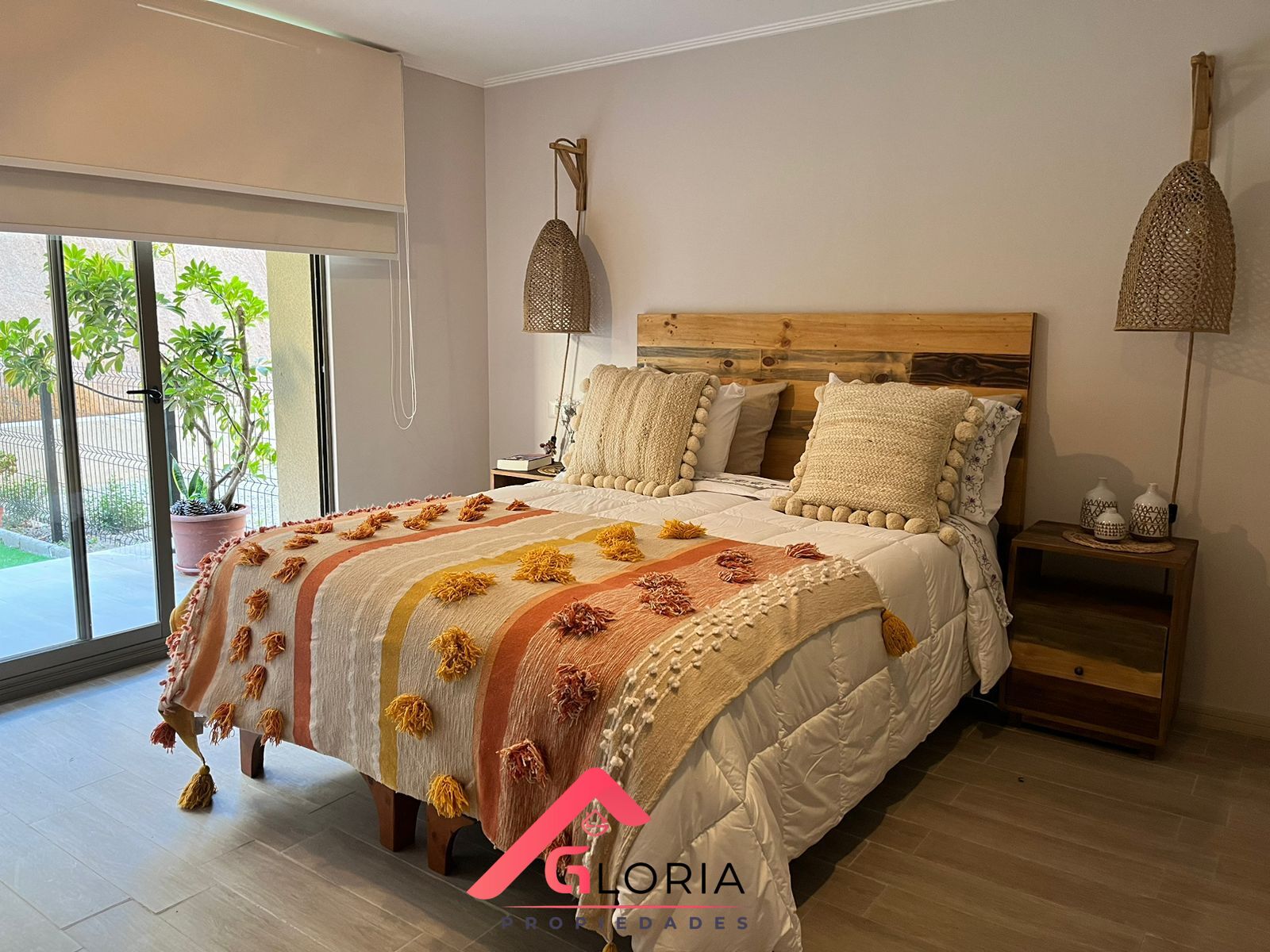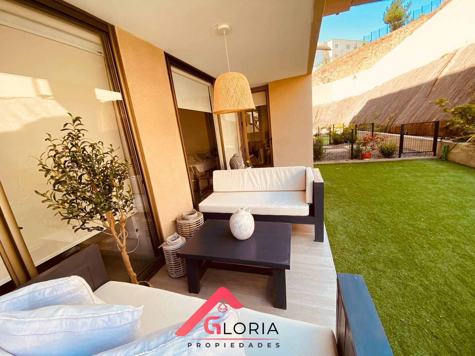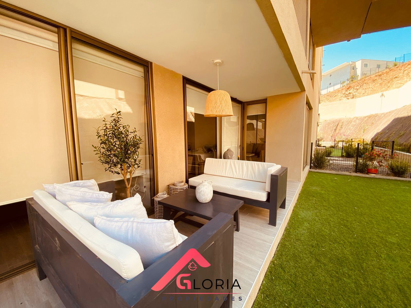 Vendemos departamento de dos dormitorios con dos baños, Amplio Living Comedor con terraza, cocina integrada, amoblada y equipada, Walk-in Closet amplio, Cortinas roller, Patio con pasto sintético,
