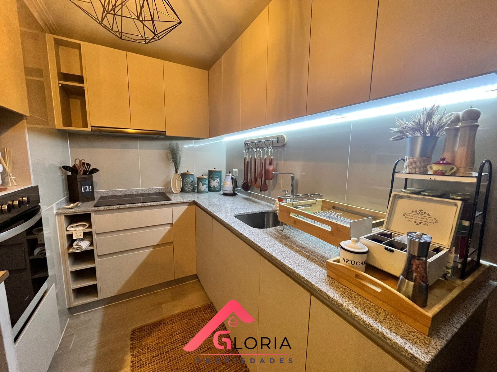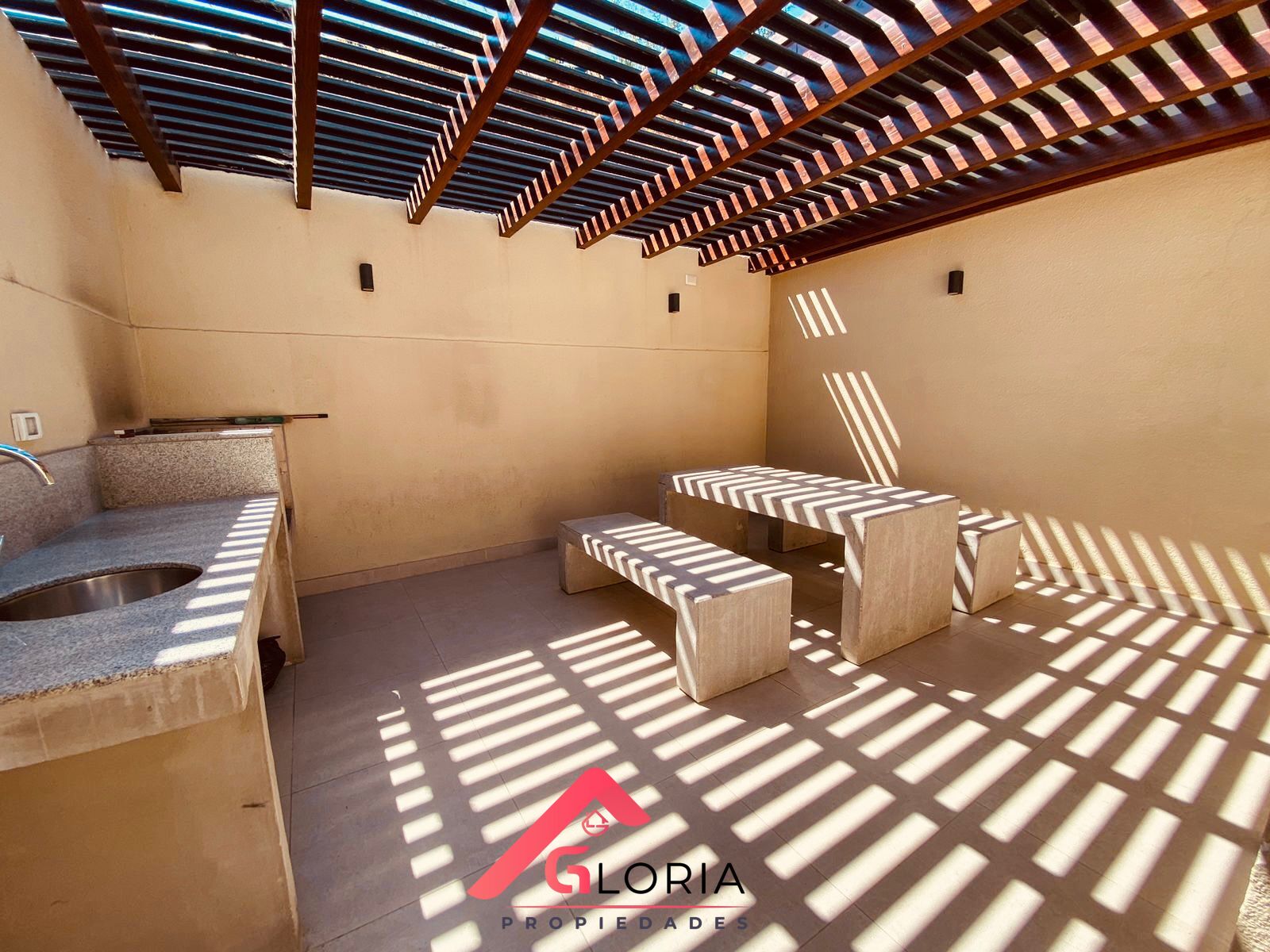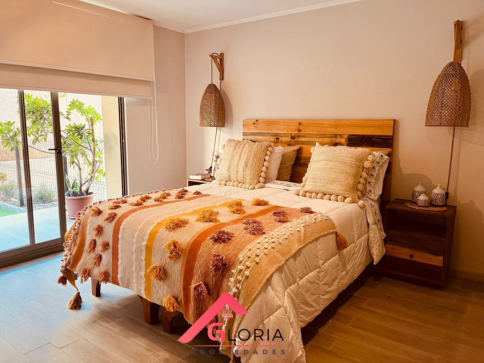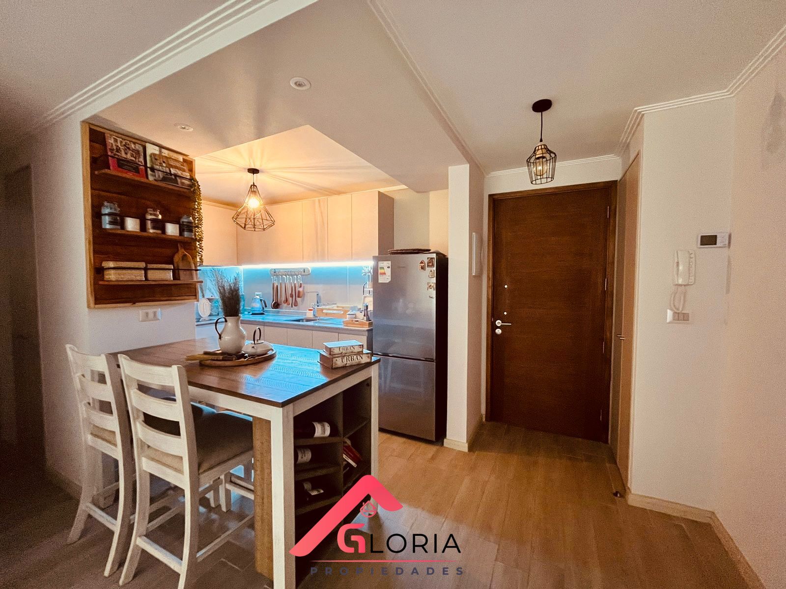 Vendemos departamento de dos dormitorios con dos baños, Amplio Living Comedor con terraza, cocina integrada, amoblada y equipada, Walk-in Closet amplio, Cortinas roller, Patio con pasto sintético,